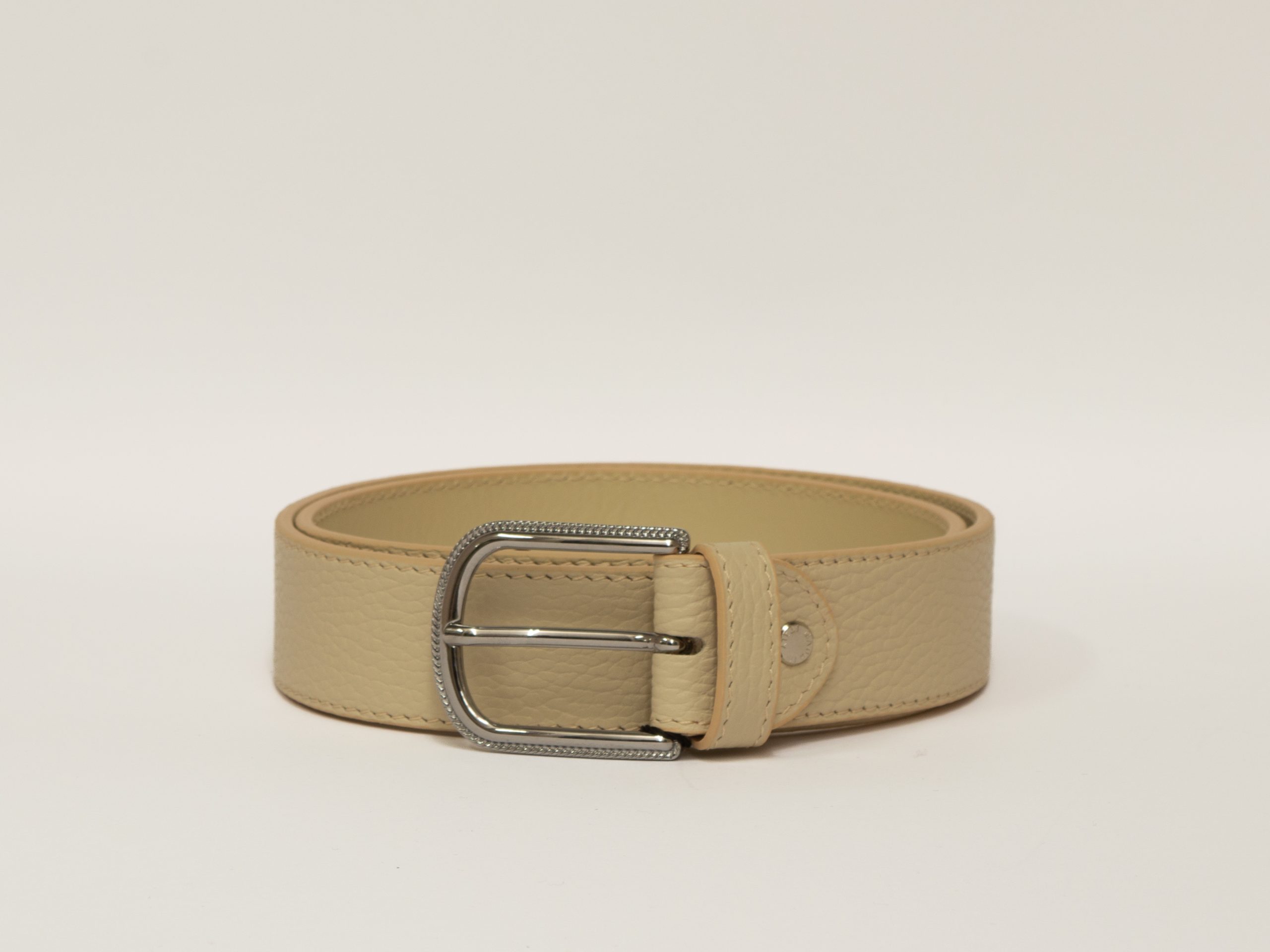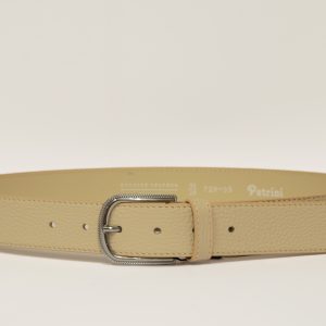 Cintura donna in pelle con effetto saffiano, caratterizzata dalla sua iconica grana a scaglie e dalla lucentezza elegante. Lavorata artigianalmente, unisce la resistenza del pellame alla raffinatezza di un accessorio senza tempo.